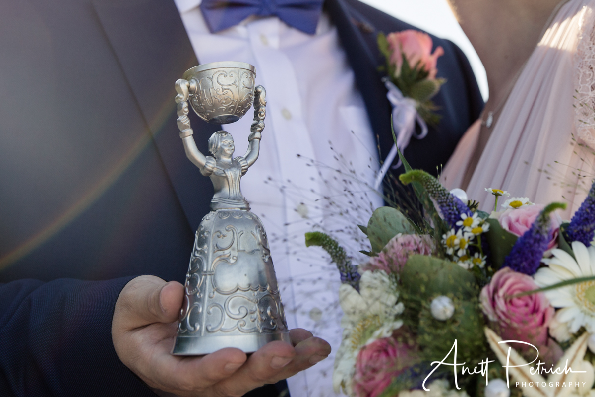 Zusammen trinkt das junge Paar geichzeitig aus beiden Bechern. Natürlich wird dazu auch eine wunderschöne Geschichte erzählt, welche die Entstehung und Bedeutung dieses Bechers zum Inhalt hat.